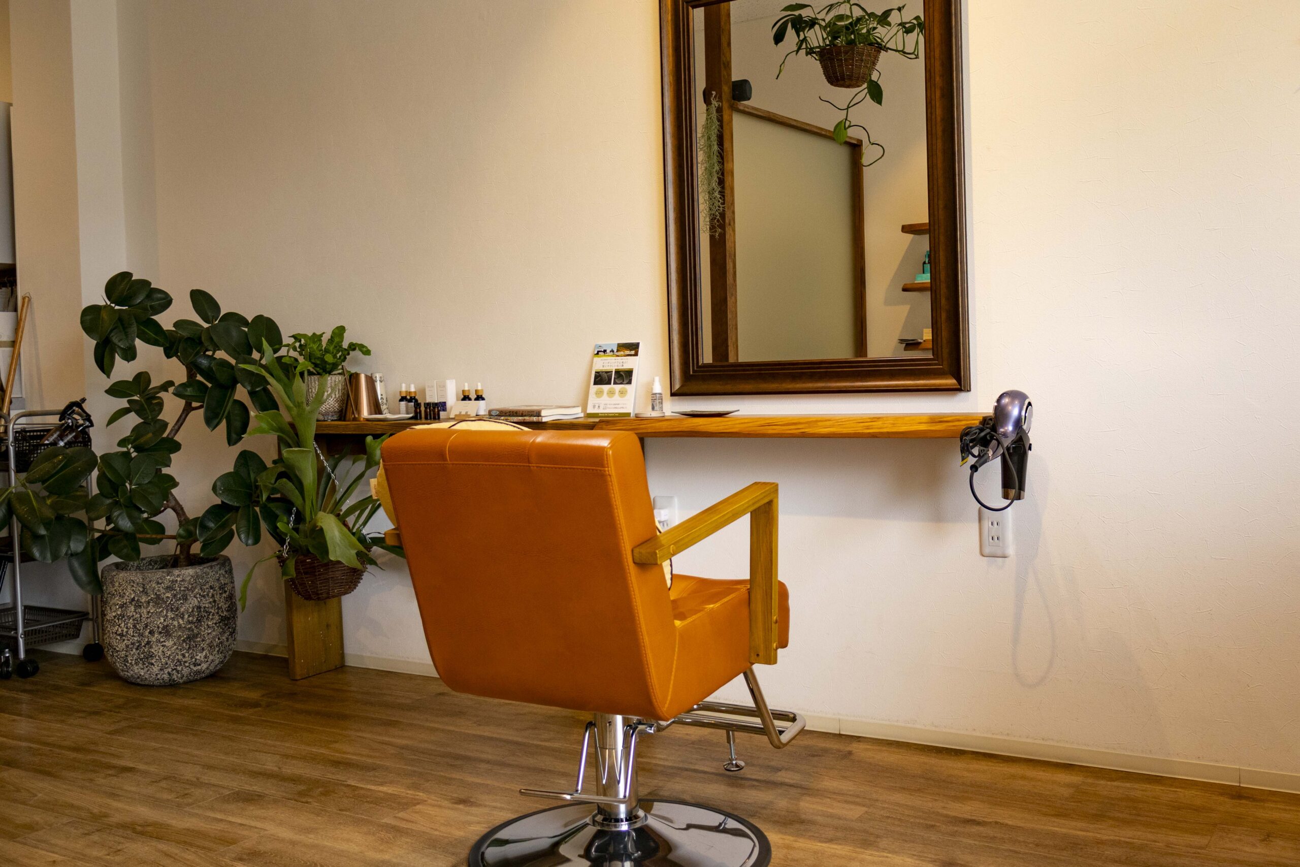 使用するケア剤は、植物由来成分にこだわったオーガニック製品を使用。合成香料や刺激の強い成分を避け、頭皮にやさしい処方のものを厳選しました。